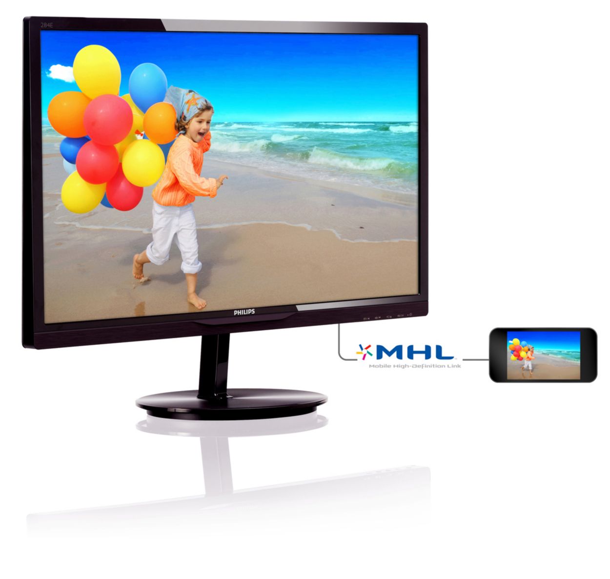 Mobile High Definition Link (MHL) is a mobile audio/video interface for directly connecting mobile phones and other portable devices to high-definition displays. An optional MHL cable allows you to simply connect your MHL capable mobile device to this large Philips MHL display, and watch your HD videos come to life with full digital sound. Now not only you can enjoy your mobile games, photos, movies, or other apps on its big screen, you can simultaneously charge your mobile device so you never run out of power half way.