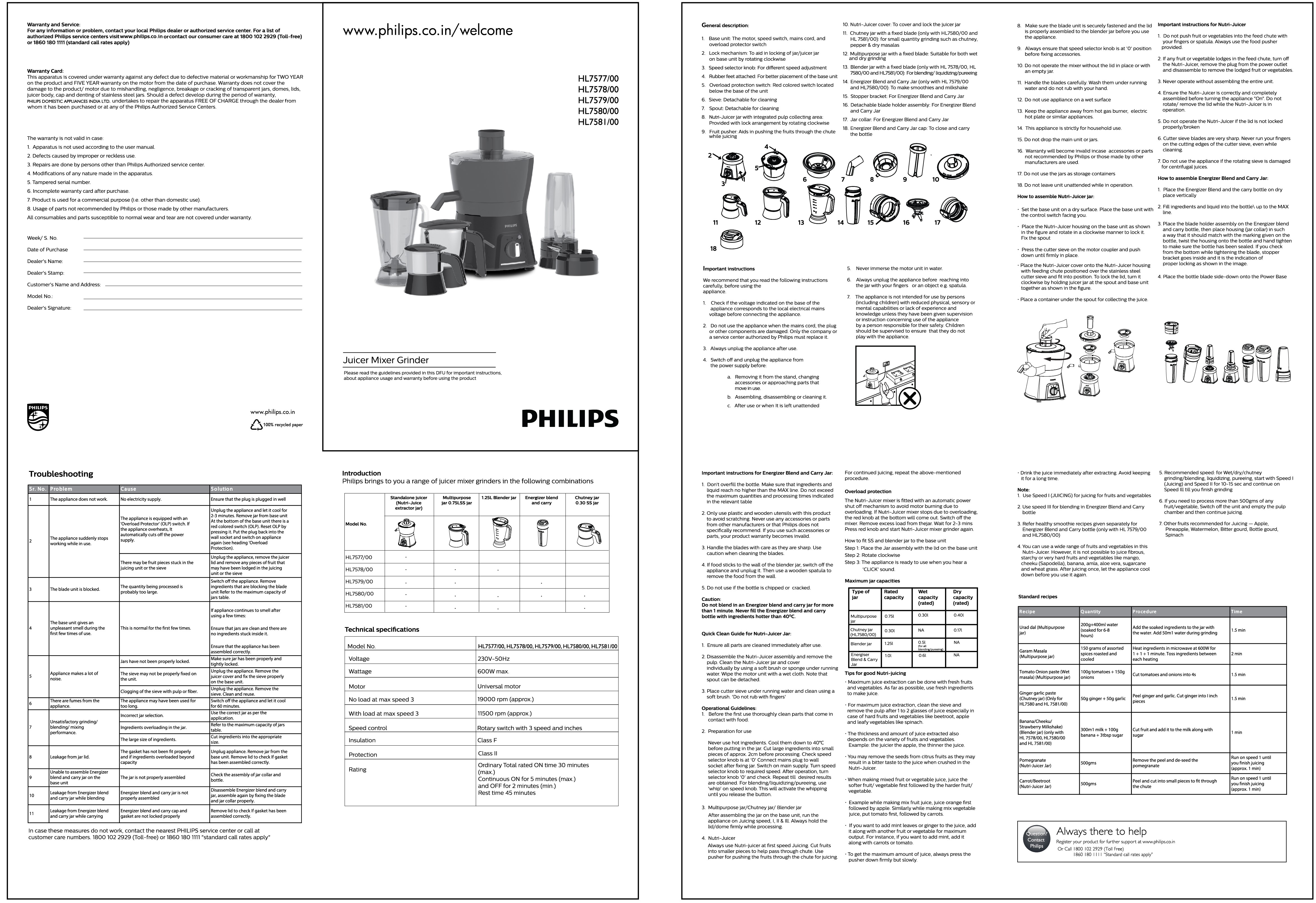 HL7581/00 Viva Collection Juicer Mixer Grinder