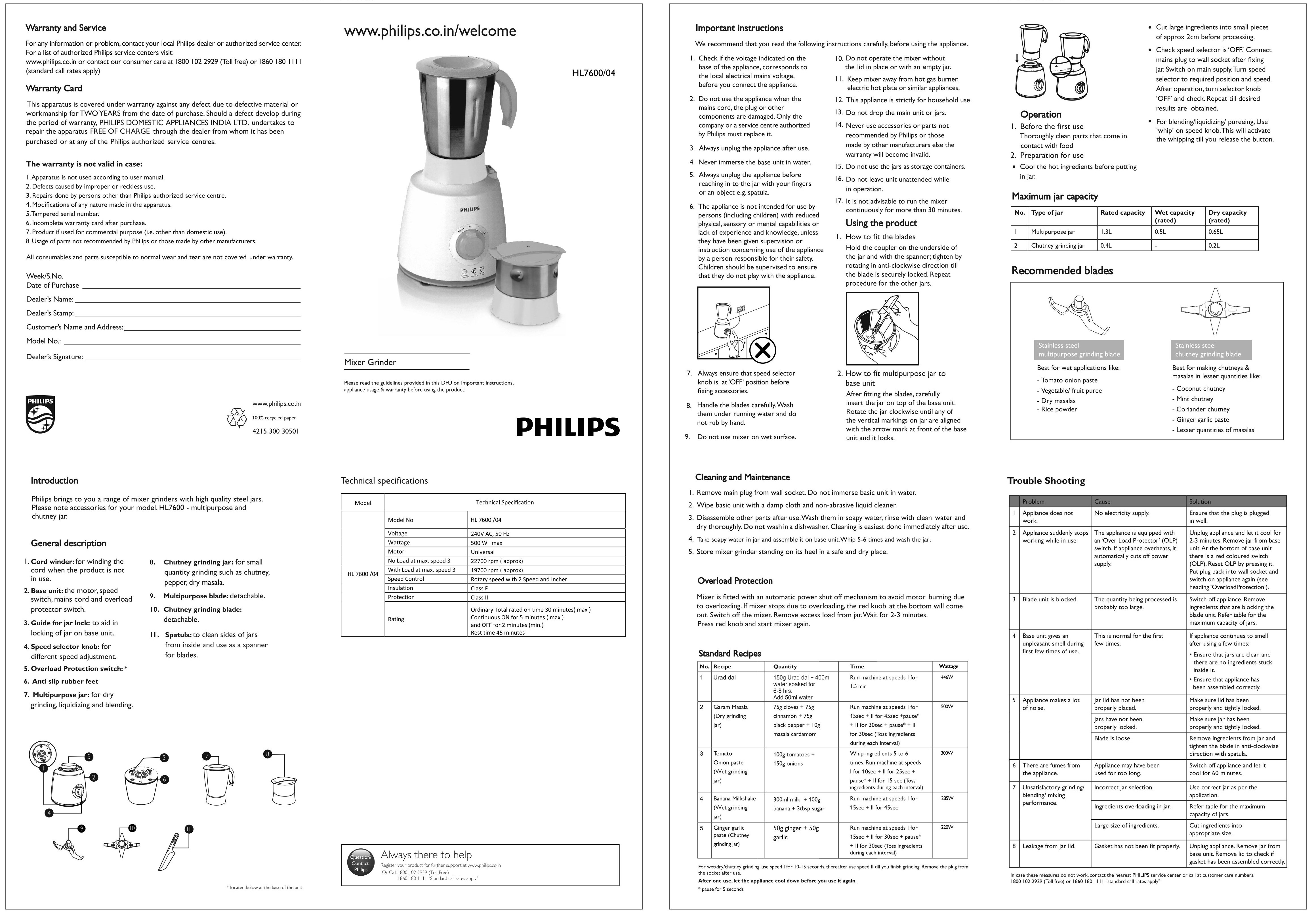 HL7600/00 Daily Collection Mixer Grinder